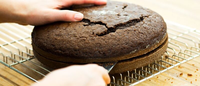 - leikkaa kakku 2–3 osaan ohuella, pitkäteräisellä veitsellä