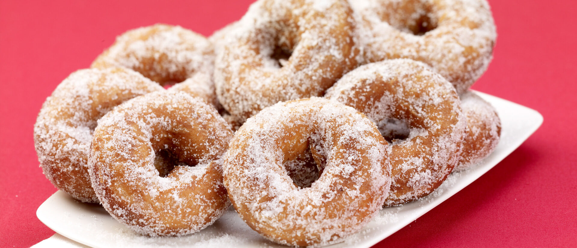 - Kierittele munkkirinkilät sokerissa ennen tarjoilua.