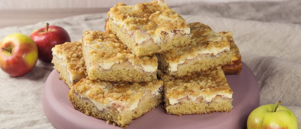 Hyödynnä syksyn omenasato ja leivo herkullinen omenapiirakka, jossa yhdistyvät pehmeä pohja, mehevä täyte ja rapea murukuorrute.