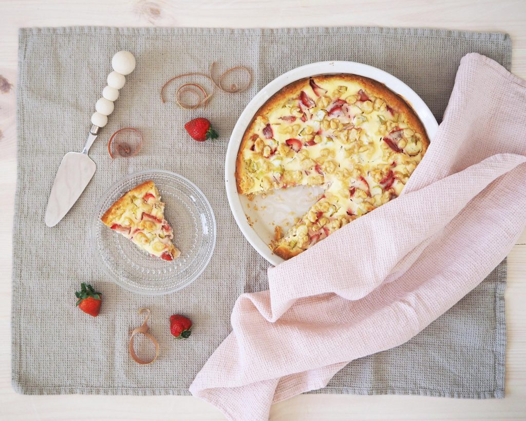 Mehevässä piirakassa yhdistyvät kaksi alkukesän suosikkia – mansikat ja raparperi.
